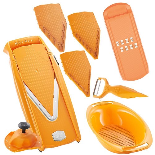 Legume taiate in forma de valuri sau in forma de gratii vor da o eleganta meselor preparate de dvs. Puteti taia in 3 grosimi diferite foarte usor. Copiilor care nu le place sa manance fructe sau legume, acum vor fi incantati de morcovii sau alte garnituri in forme de valuri sau gratii. Va recomandam folosirea unui dispozitiv de protectie Borner pentru siguranta dvs., cumparat separat. Produsul este disponibil in 3 culori: portocaliu, rosu si verde.