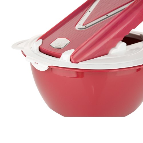 Design-ul sau unic va permite sa radeti fructe si legume cu precizie si fara pierderi, in timp ce va protejeaza de lamele ascutite.